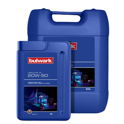 BULWARK HERCULES HD 20W-50 oil is manufactured using premium hydrocracked mineral base stocks and high-performance additives to provide reliable and superior all year-round performance. Recommended for use in naturally aspirated and turbo-charged high speed 4-stroke diesel engines without diesel particulate filters (DPF) deployed in commercial road transport and off highway application